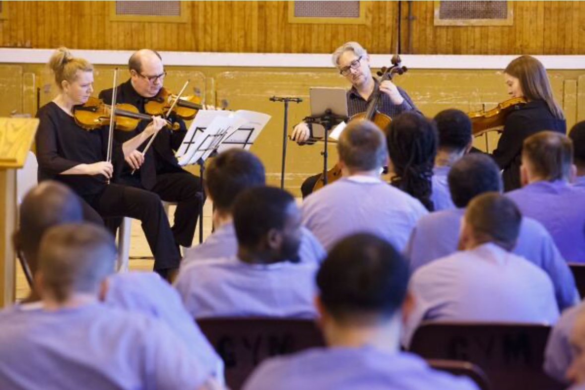 Oh, and it is home to the city’s largest prison. The musicians played for about 50 incarcerated men in matching denim jumpers, several of whom were moved to tears by what they heard.